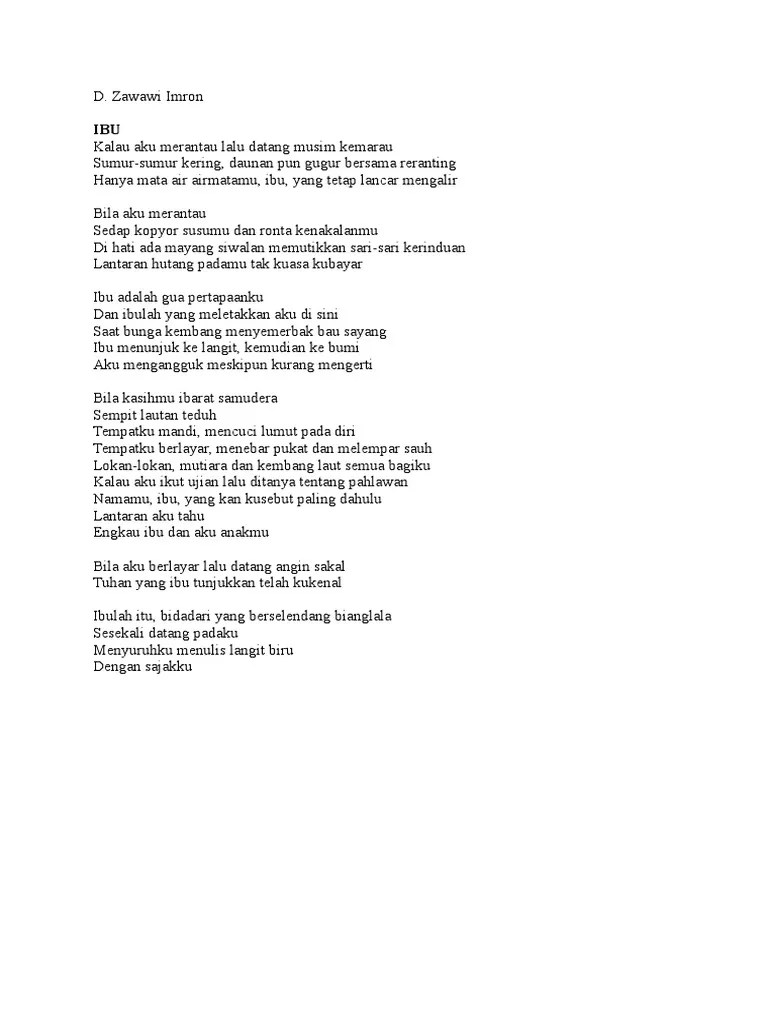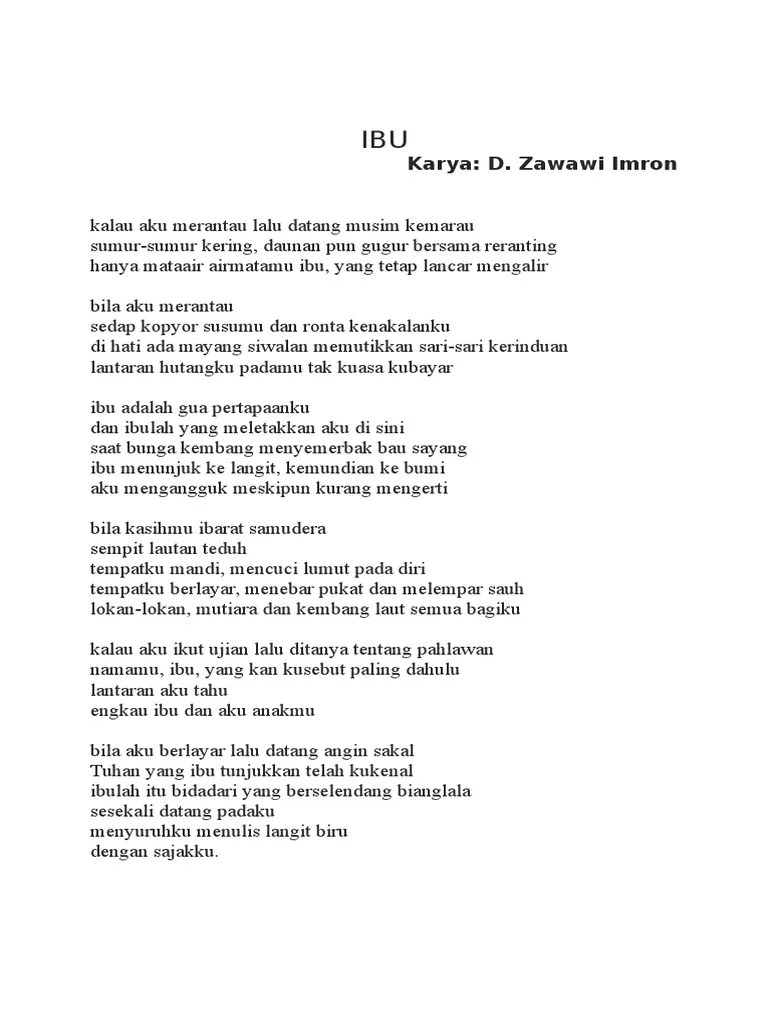 Puisi Zawawi Imron / Pdf Kajian Sosiobudaya Kumpulan Sajak Madura Akulah Darahmu Karya D Zawawi Imron / Check spelling or type a new query.